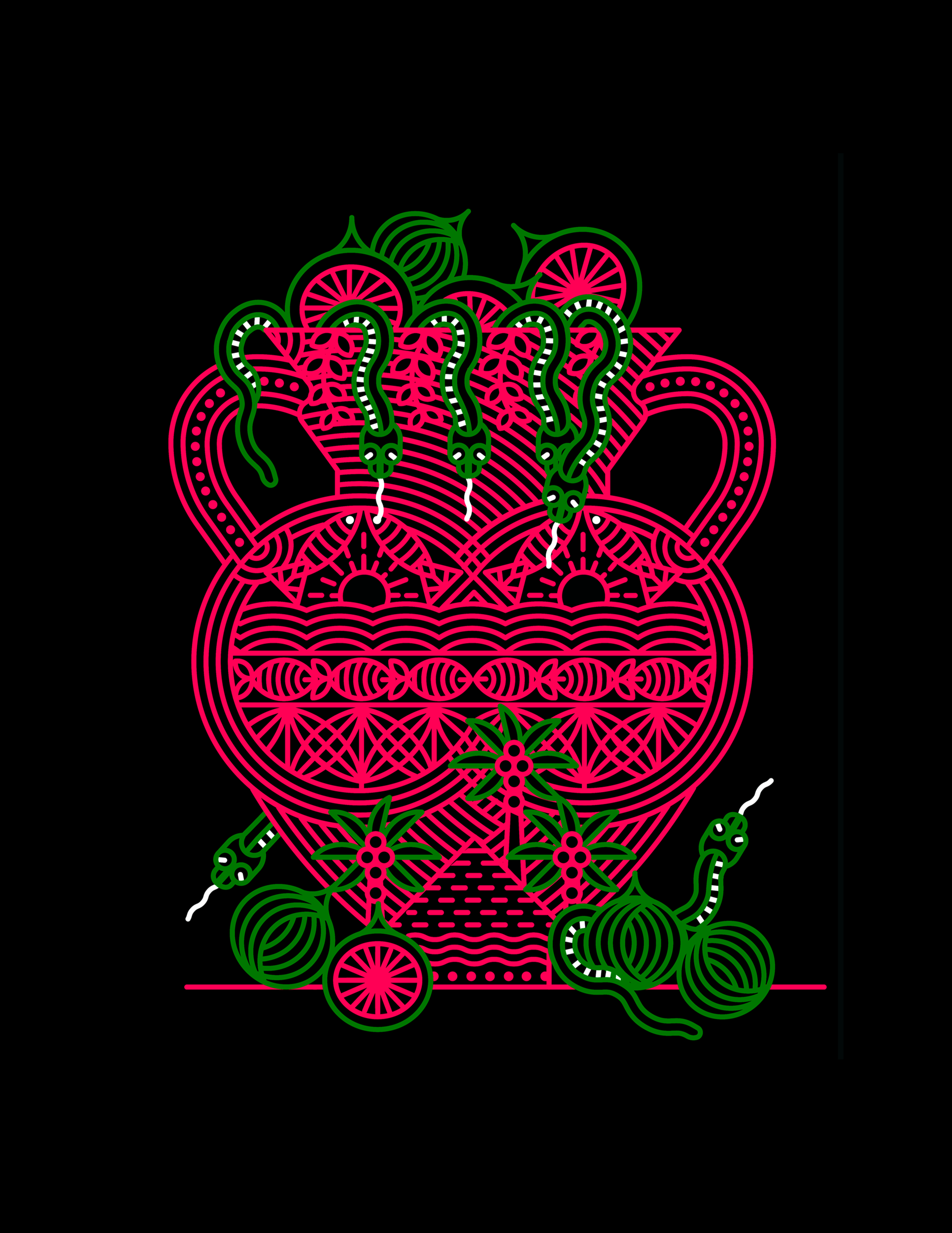 A clown delivers a basket of figs hiding asps, which Cleopatra presses to her breast. Her theatrical suicide transforms her in death into Antony’s true wife, in contrast to her worldly image as a seductress. The basket carries symbolic motifs, including fish, echoing the Romans’ comparison of Antony to a great fish captivated and caught by Cleopatra.