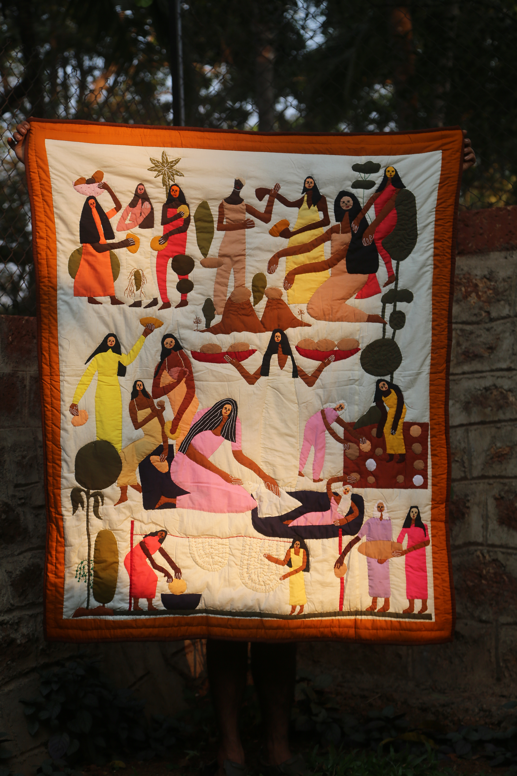 Your beloved Bread artwork as a quilt. Hand crafted by fabric artist Neelam di, in collaboration with Project Purkul.