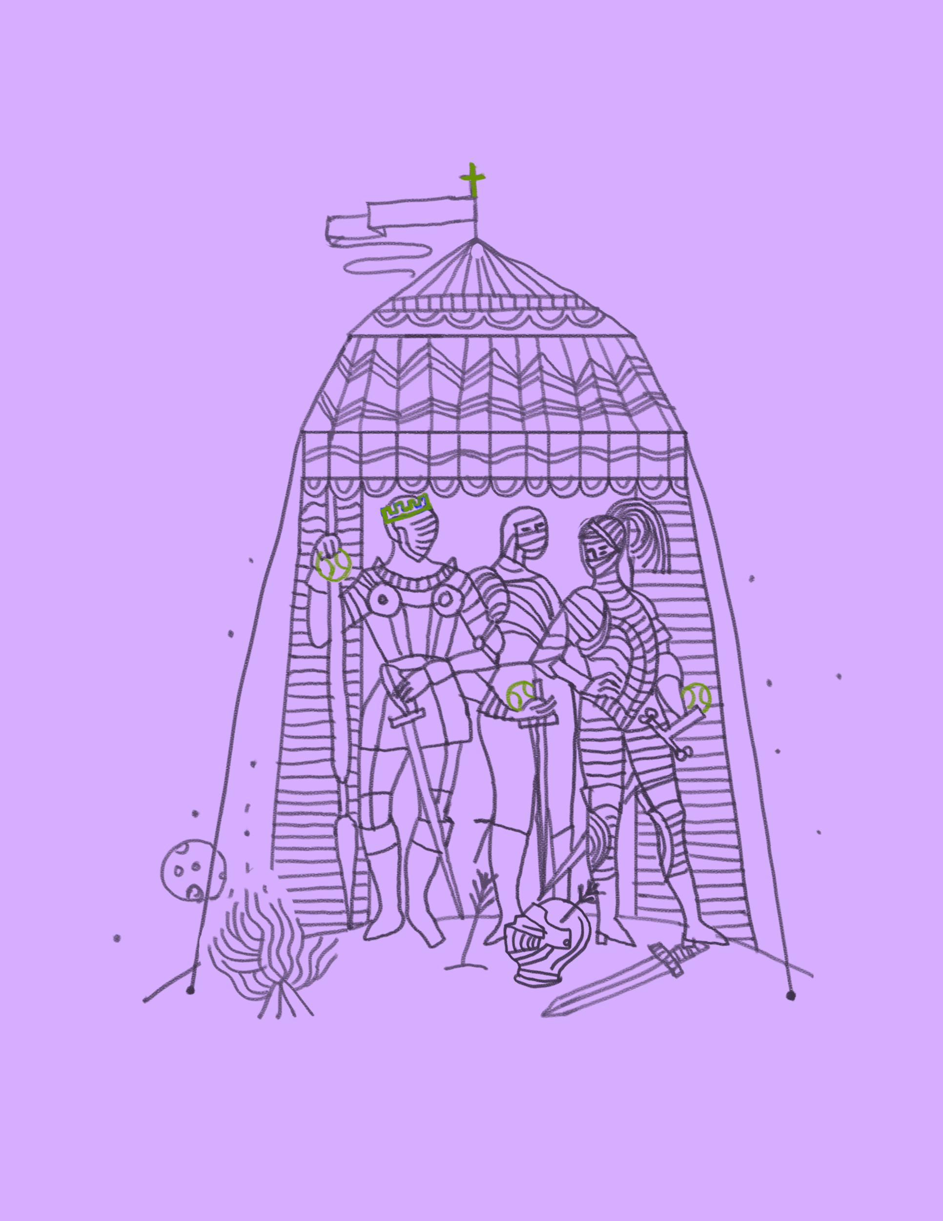 Henry, dressed as a commoner to blend in, marches with his soldiers to war. The French gift of tennis balls becomes a symbol of his resolve to defeat France, with the conflict envisioned as a tense match.