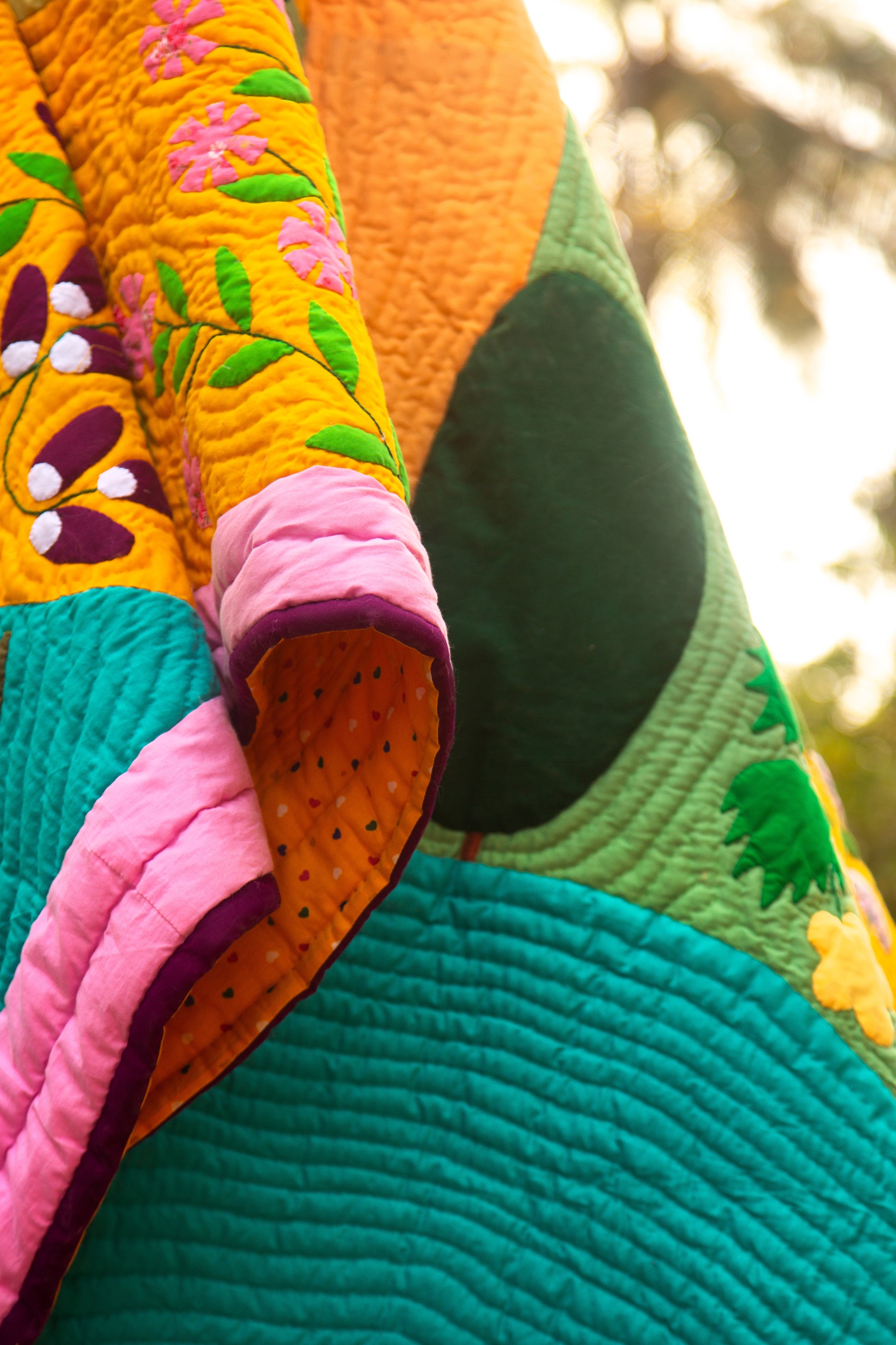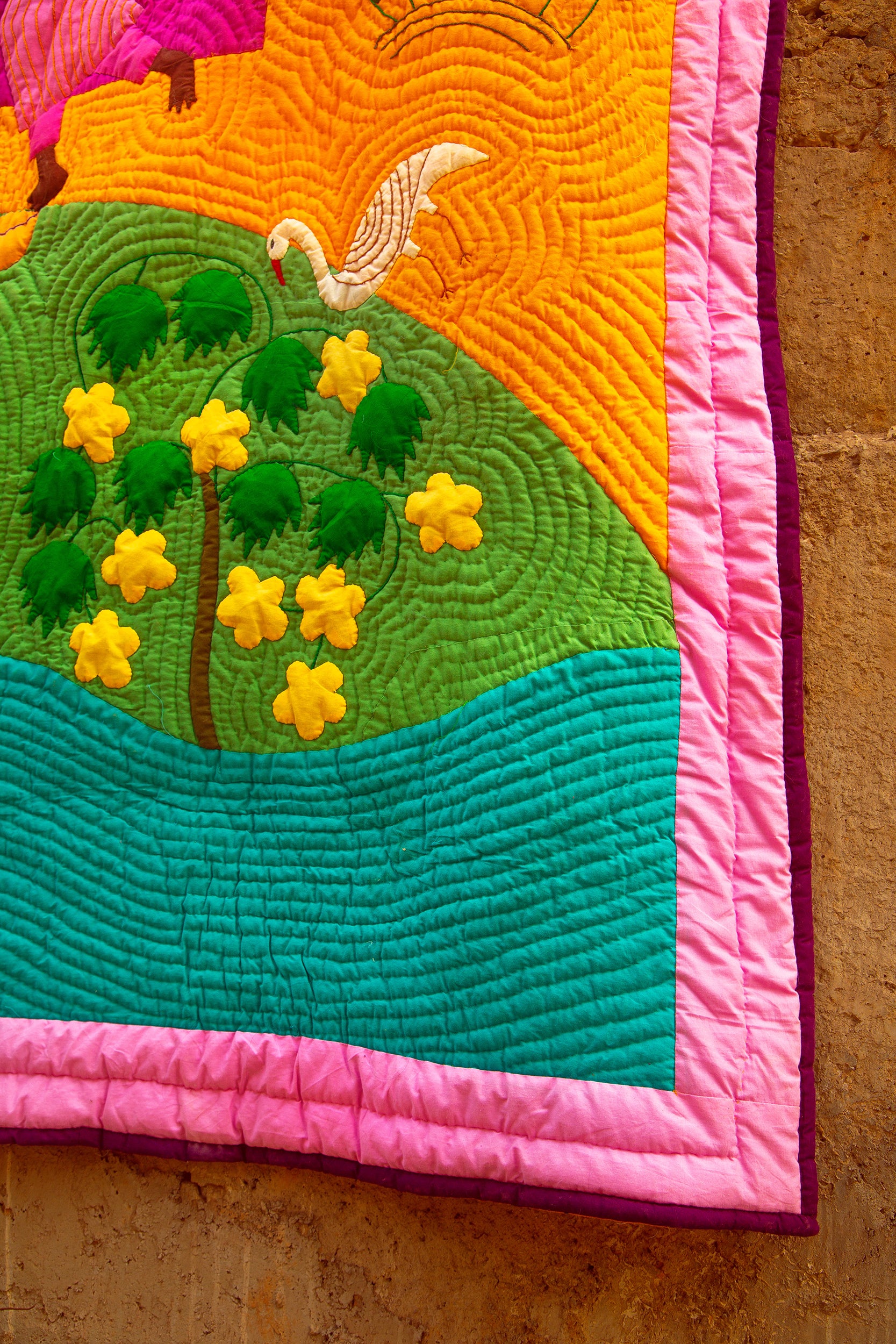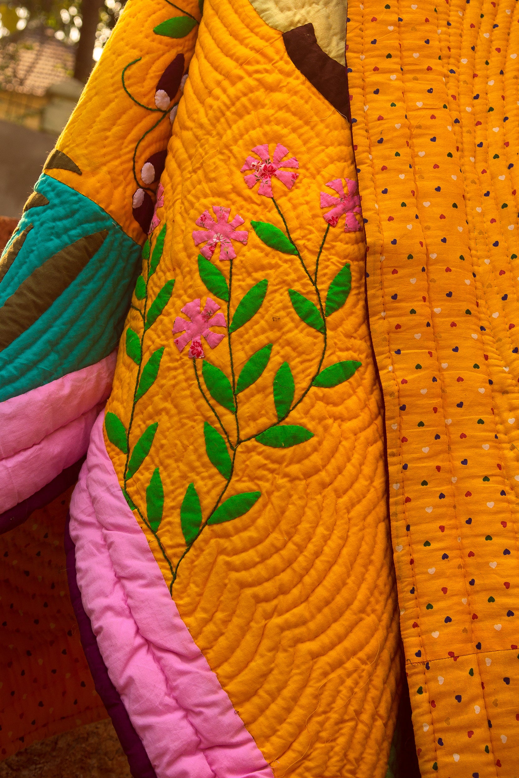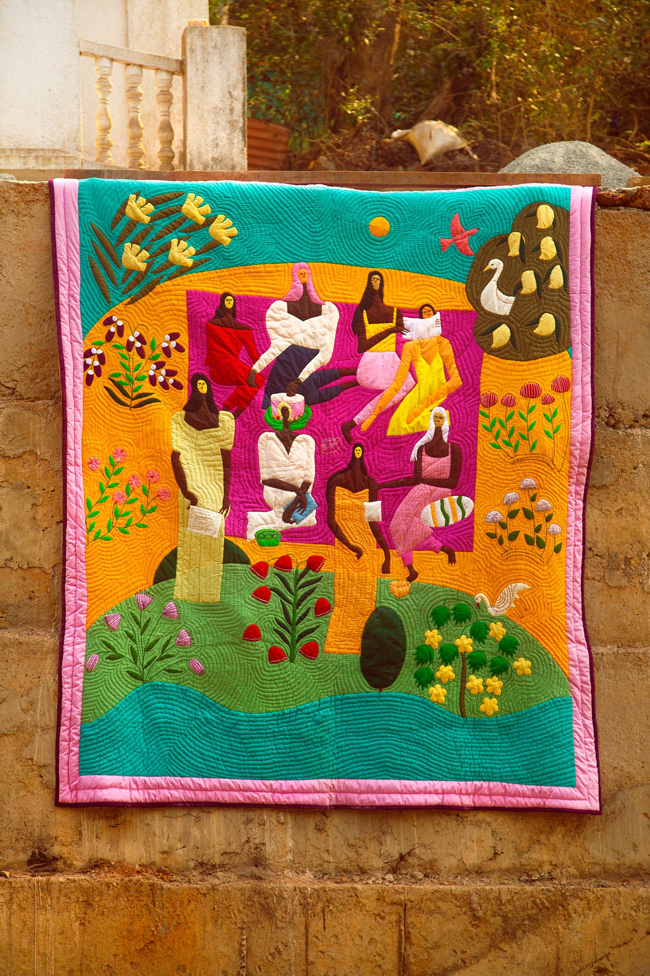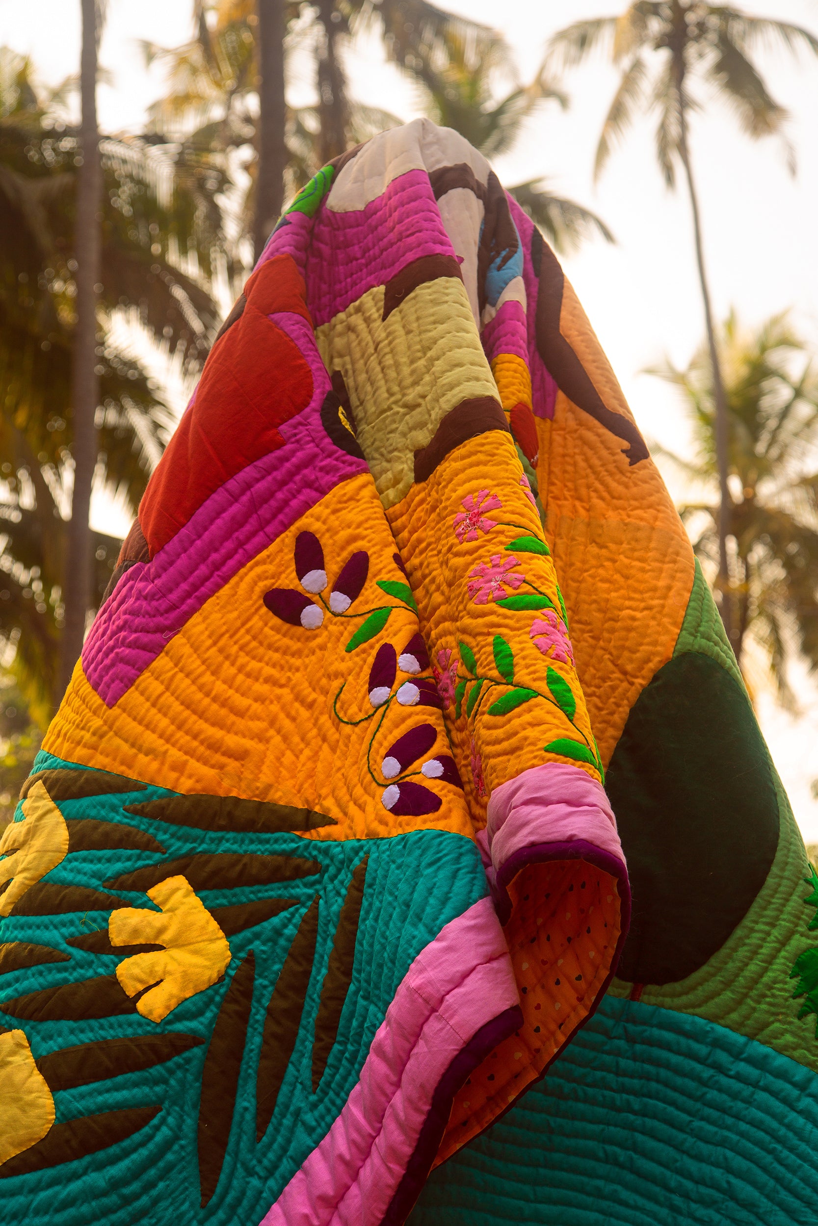 Your beloved Troublemakers artwork as a quilt. Hand crafted by fabric artist Neelam di, in collaboration with Project Purkul.